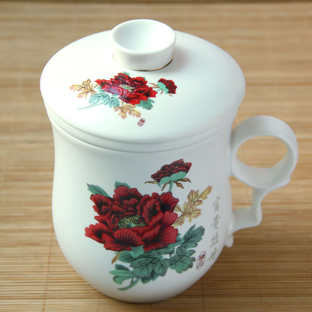 Poeny Ceramic Chinese Porcelain Tea Mug Cup with lid Infuser Filter 300ml #07